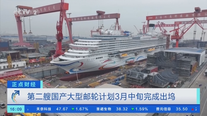 第二艘国产大型邮轮计划3月中旬完成出坞。