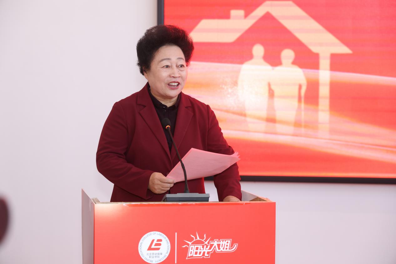 北京劳动保障职业学院党委书记刘丽波在活动致辞中强调,此次与阳光大姐的共建合作,是北京劳动保障职业学院深入落实习近平总书记“大思政课”建设重要指示精神的具体行动,是深化产教融合、推动思政教育与家政服务领域实践深度融合的创新探索。她提出三点希望:一是希望校企双方携手将基地打造成 “立德树人的示范平台”,完善实践教学体系,深化课程思政资源开发;二是希望广大教师以基地为课堂,将行业案例与职业故事转化为教学资源,让思政教育传递 “民生服务的时代温度”;三是希望同学们珍惜实践机会,在服务一线锤炼专业技能、坚定职业理想,书写青春奋斗答卷。